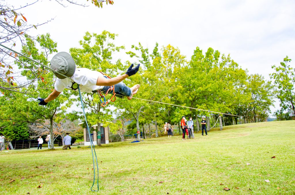 阿知須きらら博記念公園・サイクル県山口 スラックライン体験